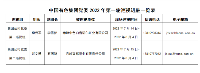 本輪巡視現(xiàn)場工作時間3周左右。期間,巡視組設有專門值班電話和電子郵箱,主要受理反映被巡視企業(yè)黨委領導班子及其成員、下一級主要負責人和重要崗位領導干部的來信來電來訪。巡視組受理信訪時間截止到2022年8月4日。