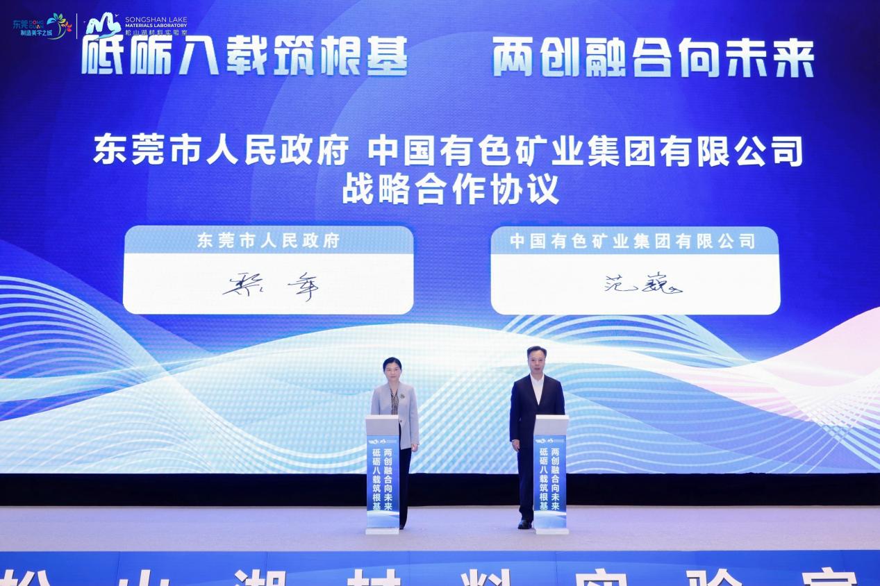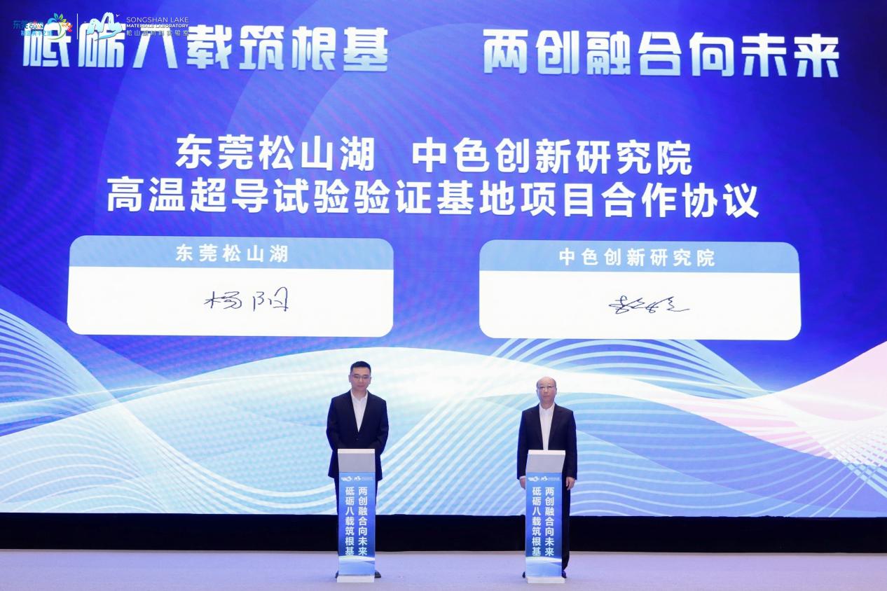 大會上,文崗和東莞市委書記韋皓共同為中色創(chuàng)新研究院東莞松山湖分院揭牌。會上還簽訂了《東莞市人民政府中國有色礦業(yè)集團(tuán)有限公司戰(zhàn)略合作協(xié)議》和《東莞松山湖中色創(chuàng)新研究院高溫超導(dǎo)試驗(yàn)驗(yàn)證基地項(xiàng)目合作協(xié)議》。