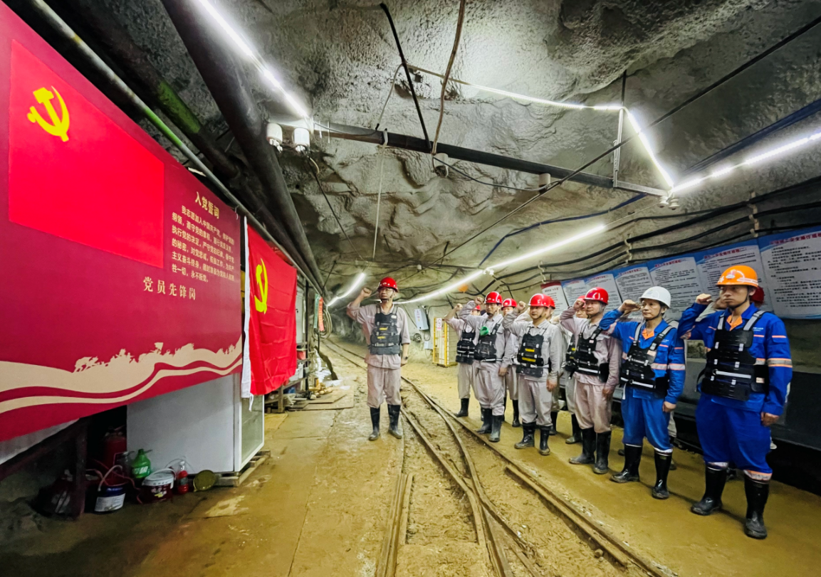 中色平桂組織黨員在井下重溫入黨誓詞,激勵廣大黨員傳承紅色基因,錘煉黨性修養,激發工作熱情。