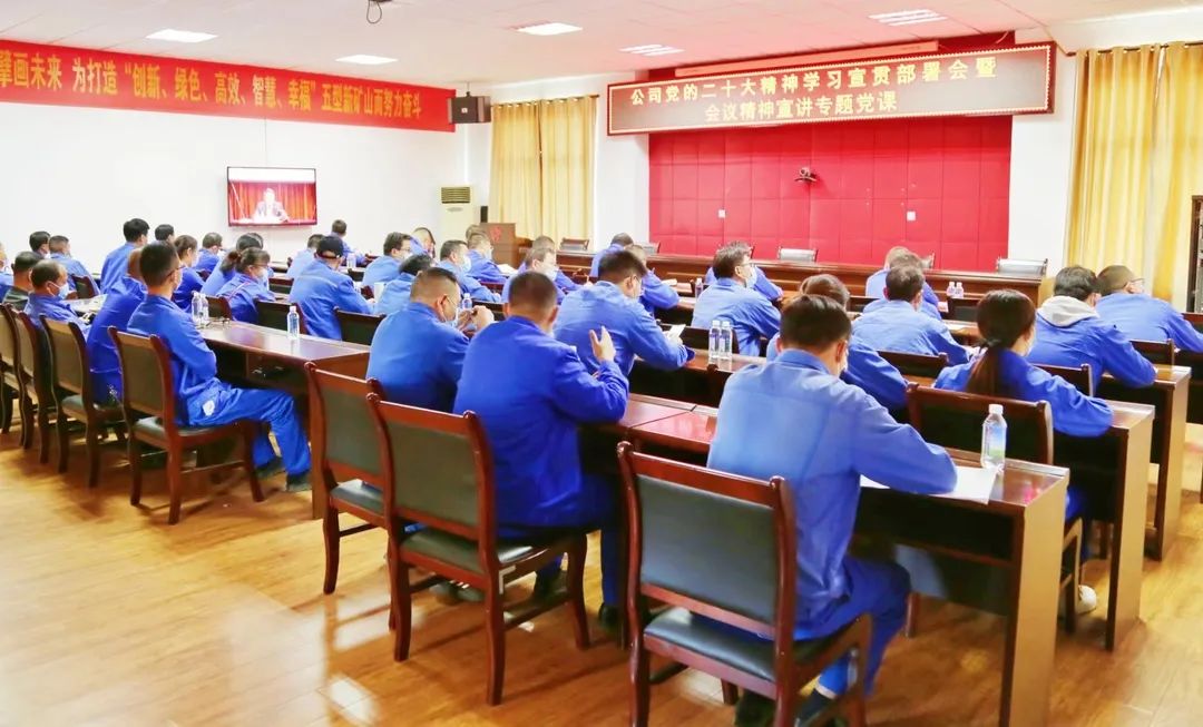 ????11月7日,在公司職教中心學術報告廳,公司召開黨的二十大精神學習宣貫部署會暨專題黨課。公司黨委書記、董事長、總經理王焱以《學習貫徹黨的二十大精神 加快綠色高質量發展 勇做集團打造世界一流企業“排頭兵”》為題講專題黨課。公司黨委副書記、工會主席王勃就公司黨的二十大精神學習宣傳貫徹工作進行了安排部署。