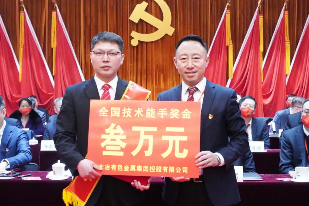 ????會上,播放了2022年度公司紅旗集體、紅旗班組以及勞動模范先進(jìn)事跡視頻短片。公司領(lǐng)導(dǎo)為2022年度公司銅都工匠、紅旗集體、紅旗班組、勞動模范和全國技術(shù)能手邵志村頒獎。