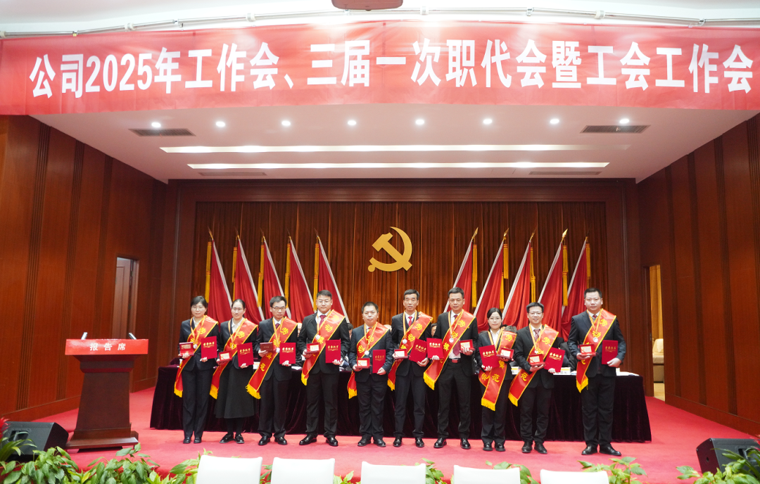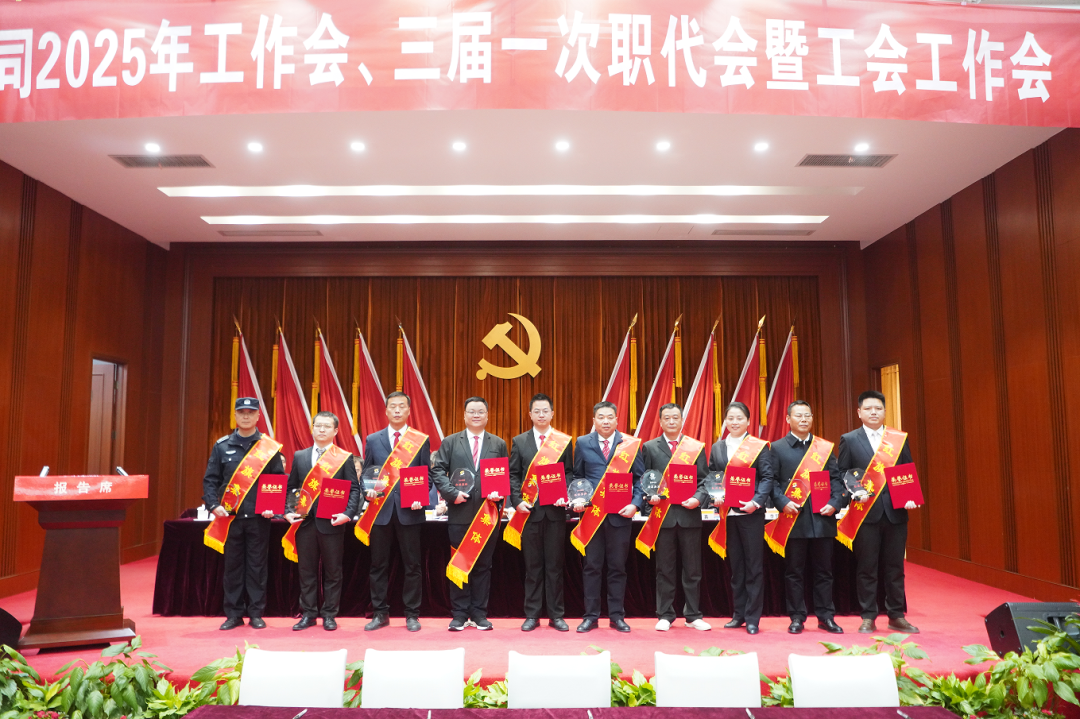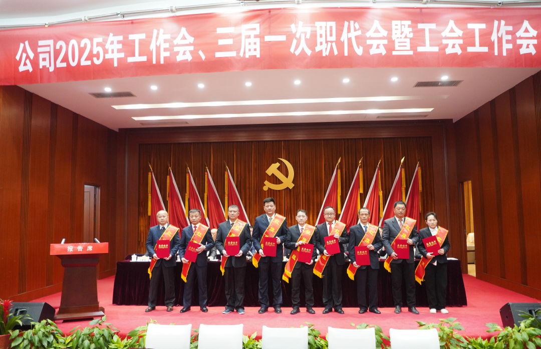 會議現場表彰了2024年度公司10個紅旗集體、9個紅旗班組、10個勞動模范。